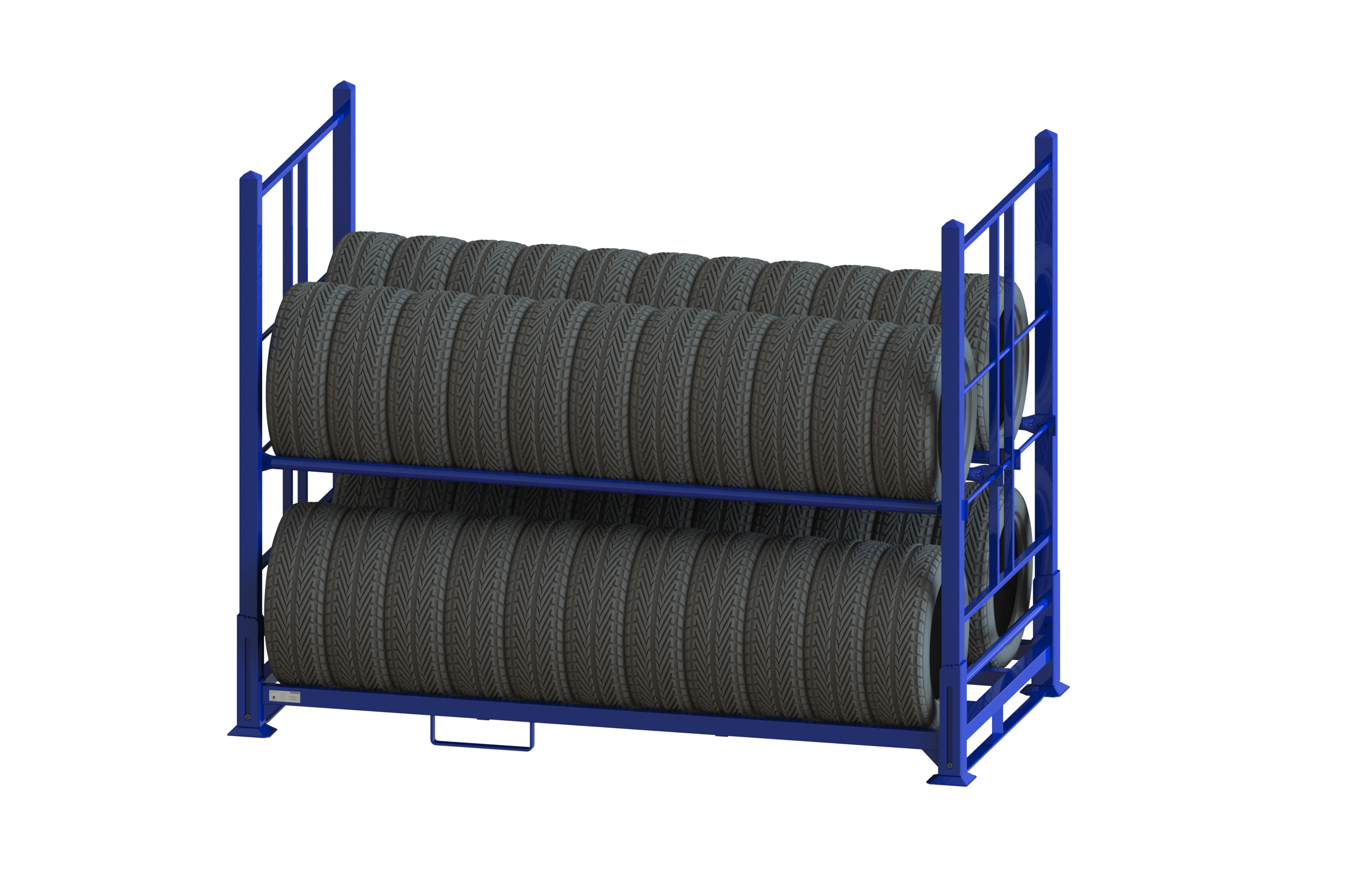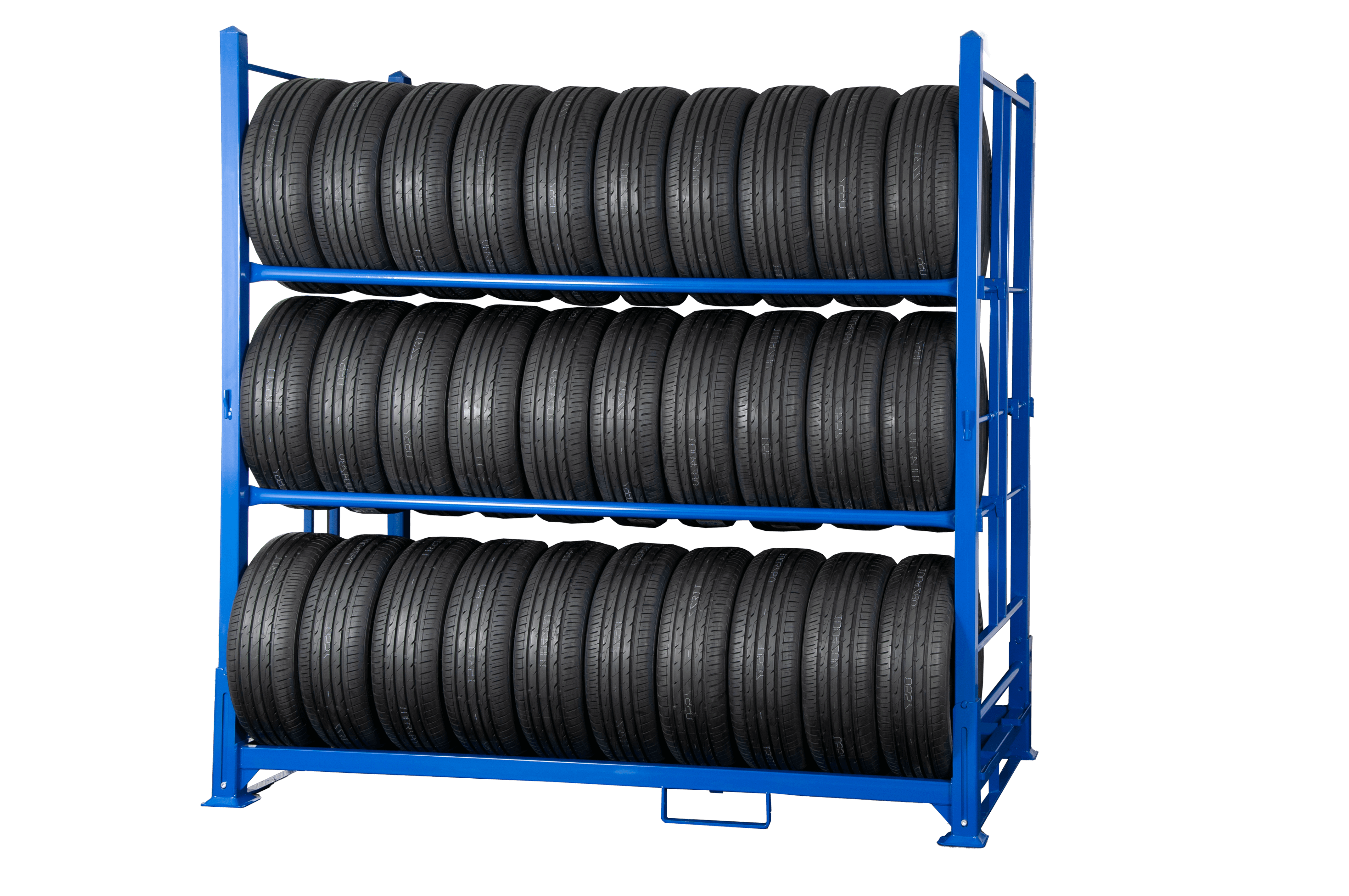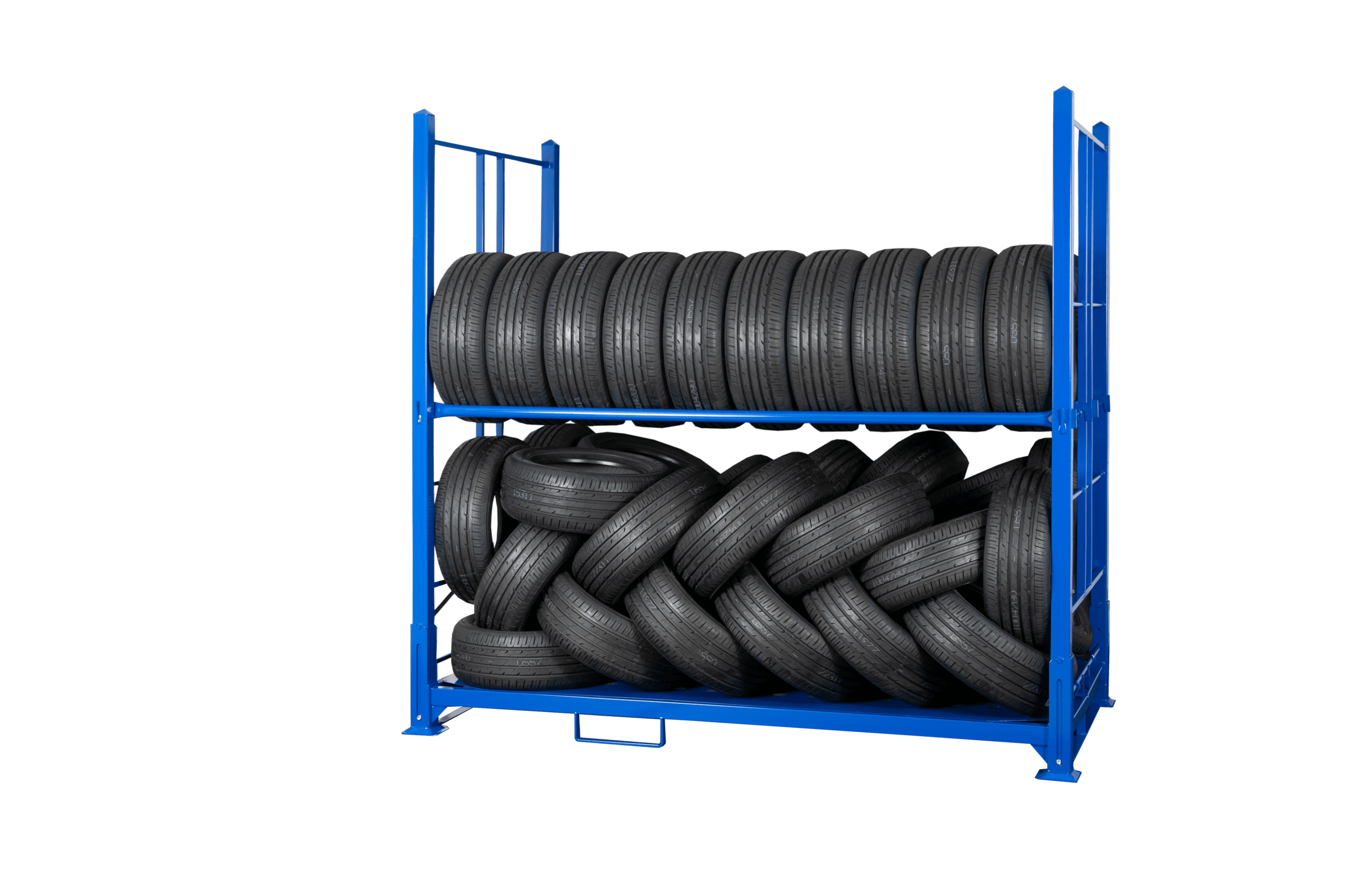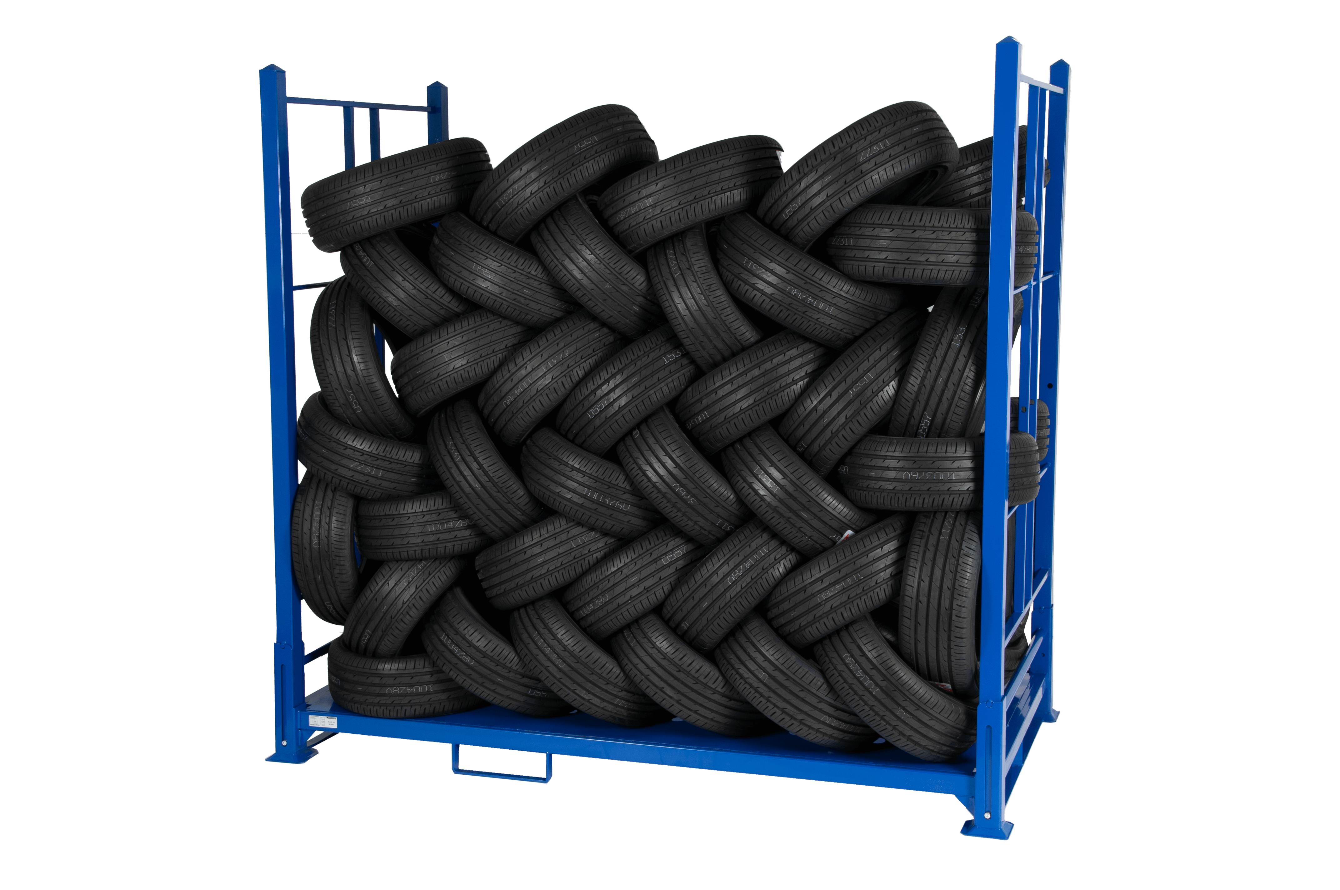 El portaneumáticos ECOTIRErack ® de acero sirve para almacenar y transportar neumáticos y se considera un soporte de carga especialmente eficiente y seguro para todo tipo de neumáticos. Ya sea para turismos/SUV, camiones, maquinaria agrícola o motocicletas, ¡las paletas para neumáticos de GEBHARDT son la elección adecuada para cualquier tipo de neumático!